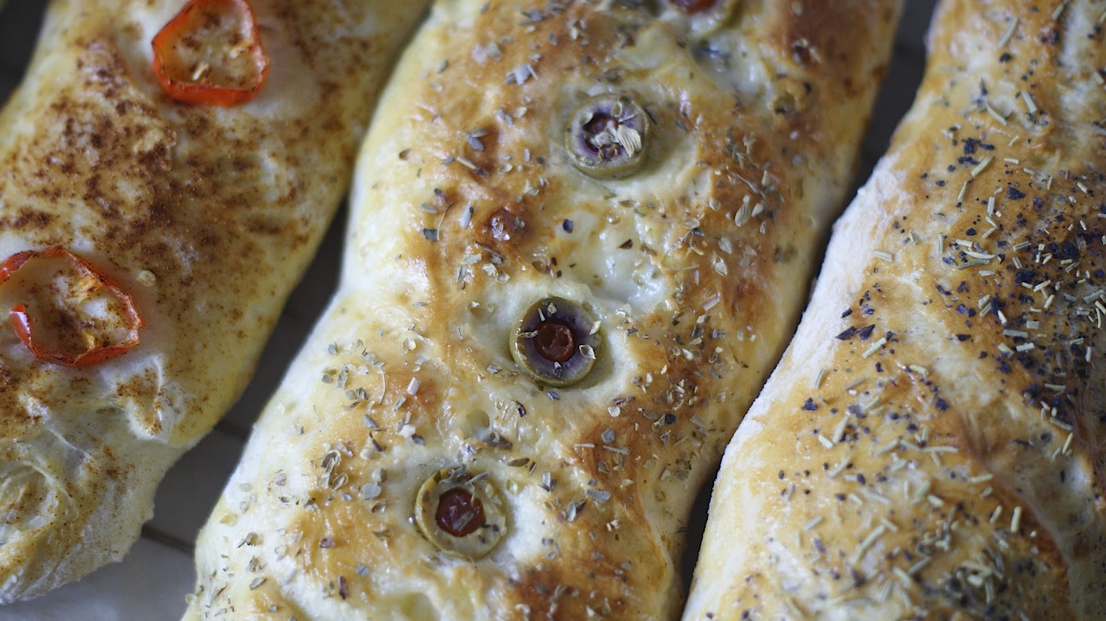 Wspaniałe bagietki, proste w przygotowaniu i idealne na śniadanie. Przepis na forum Cincin umieściła Bajaderka, za co bardzo jej dziękuję, bo bagietki wychodzą cudowne. Najbardziej smakują mi te z oliwkami i gorgonzola w połączeniu z oliwą z oliwek i solą. Mniam....